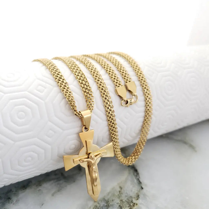 Cadena De Caballero De Tejido Chino De 60cm-5mm De Grosor + Dije De Crucifijo Espada + Envío Gratis
