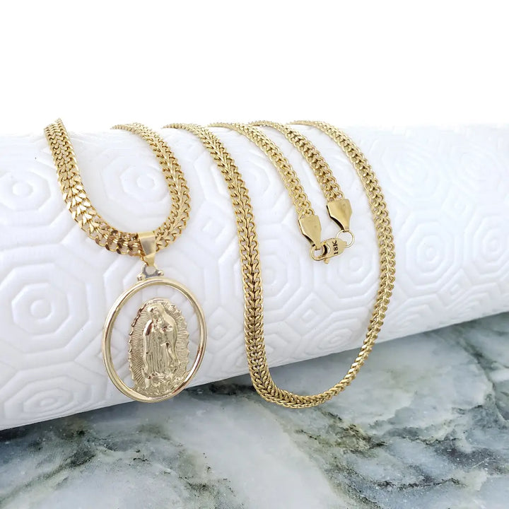 Cadena De Caballero De Tejido Chino De 60cm-5mm De Grosor + Dije De La Virgen De Guadalupe + Envío gratis