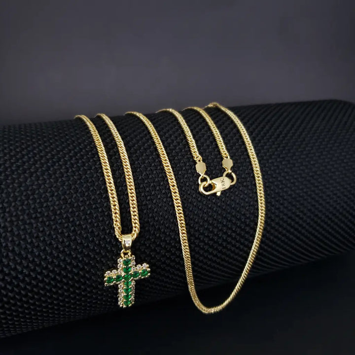 Cadena De Caballero De Tejido Cubana Continua De 60cm-2mm De Grosor + Dije De Cruz + Envío Gratis