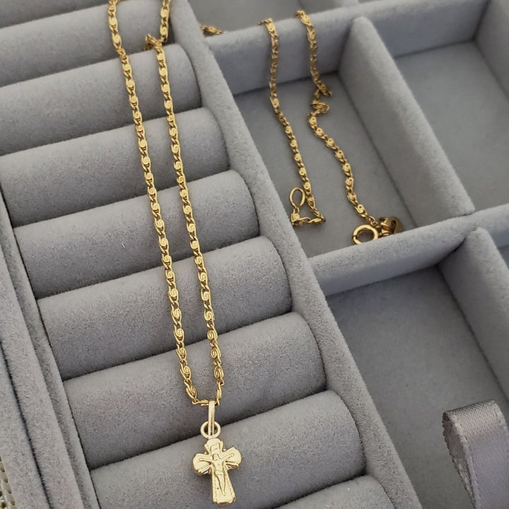 Cadena De Dama De Tejido Caracol de 50cm-1mm De Grosor + Dije de Cruz