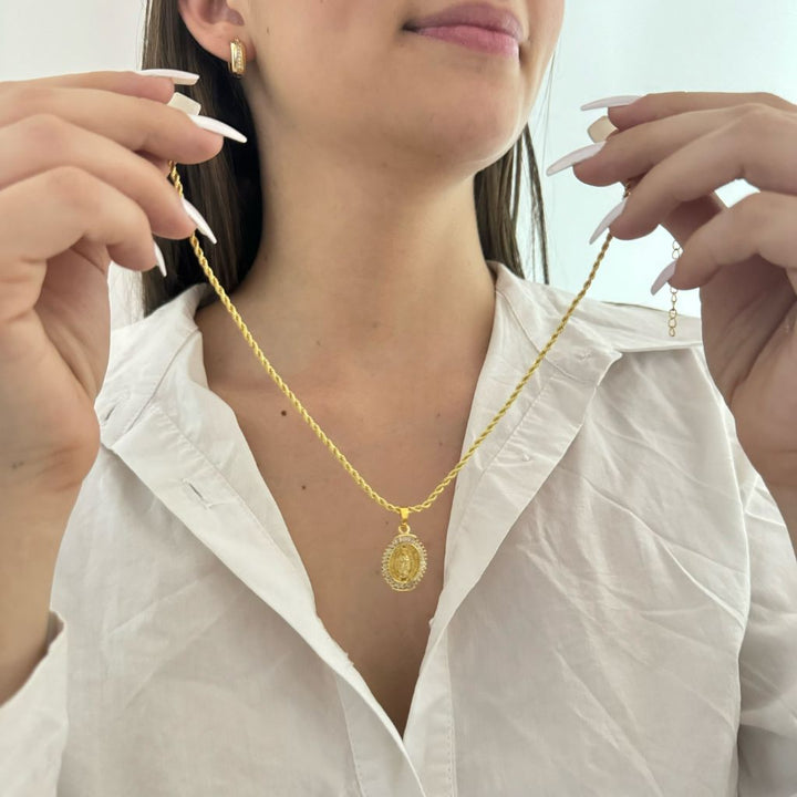 Cadena De Dama De Tejido Lazo de 45cm-3mm De Grosor + Dije de La Virgen de Guadalupe