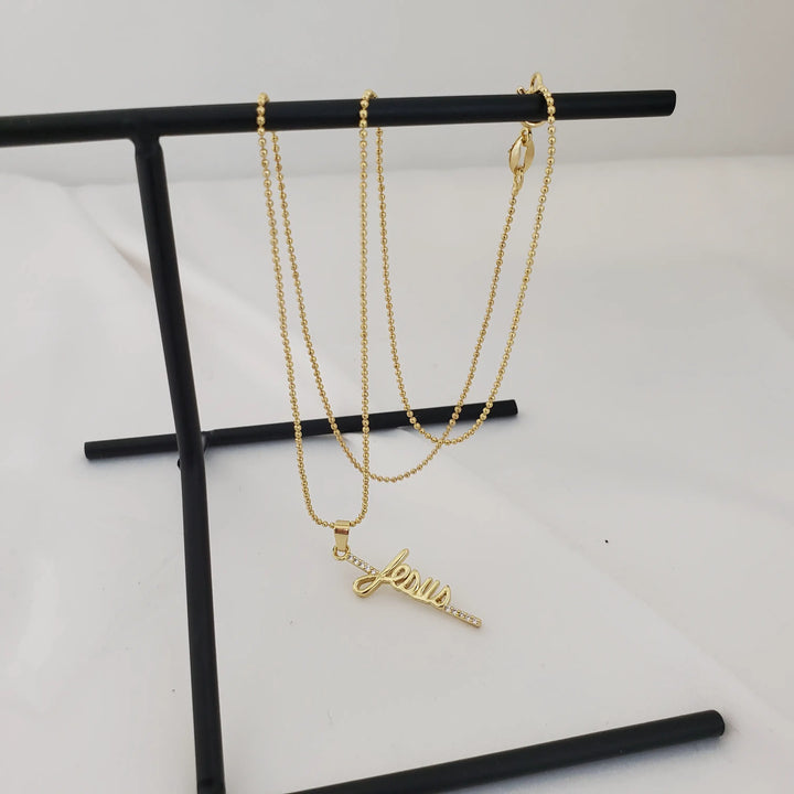 Cadena De Dama De Tejido Militar de 50cm-1mm De Grosor + Dije de Cruz Jesús