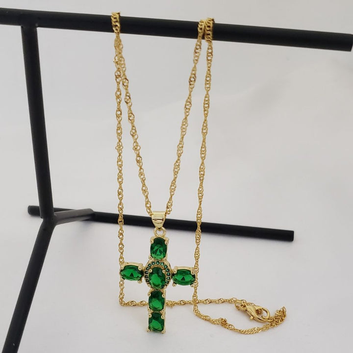 Cadena De Dama De Tejido Singapur de 50cm-1mm De Grosor + Dije De Cruz Esmeralda