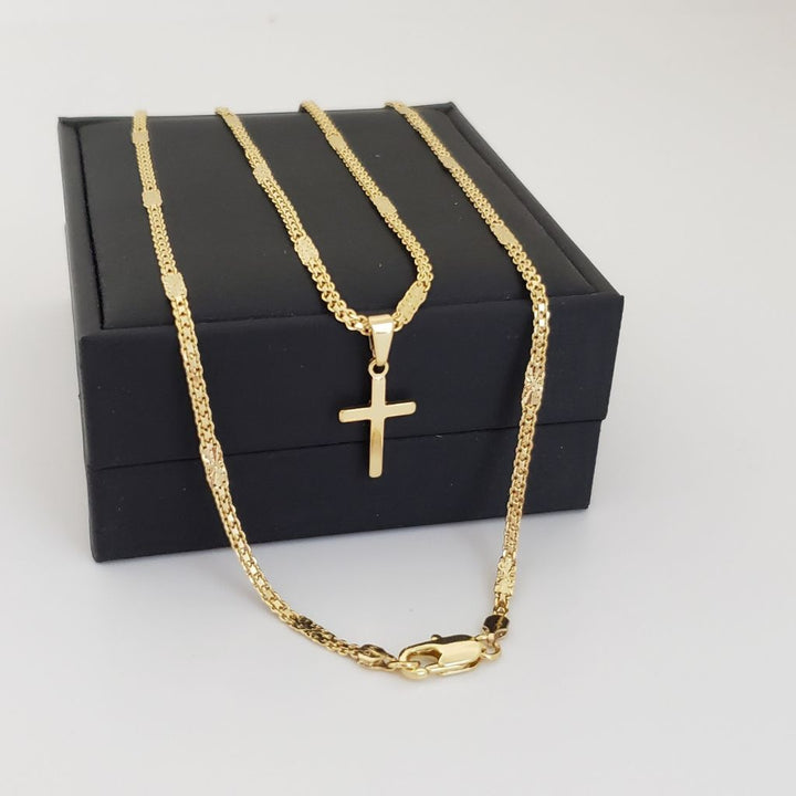 Cadena De Dama Tejido Chino Con Destellos de 50cm-3mm De Grosor + Dije De Cruz