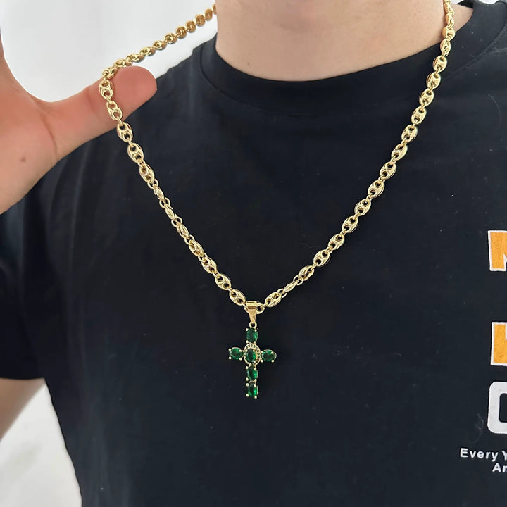 Cadena De Tejido Gucci de 60-5mm De Grosor + Dije de Cruz Cristal Esmeralda