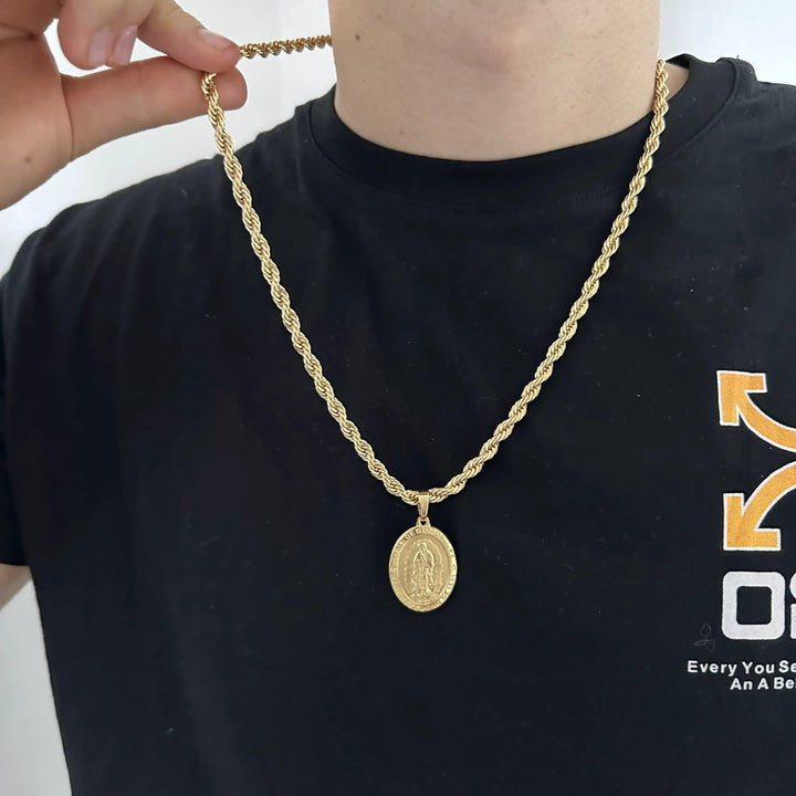 Cadena Tejido Lazo Grueso de 60-5mm De Grosor + Dije de La Virgen de Guadalupe