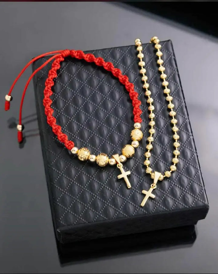 Conjunto De Caballero Con Cadena De Tejido Militar De 60cm-4mm De Grosor + Dije De Cruz + Manilla + Envío Gratis