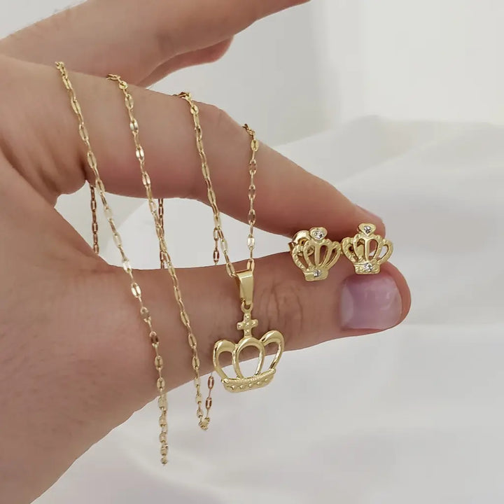 Conjunto De Dama Con Cadena De Tejido Crispeta De 50cm-2mm De Grosor + Dije De Corona + Topos De Corona + Envío Gratis