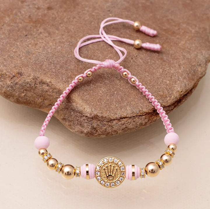 Pulsera De Dama De Tejido Macramé Con Neoprenos De 6mm, Balines Lisos de 3mm, 4mm, 5mm Y 6mm, Rondeles de 4mm Y Herraje de Rolex Cristal