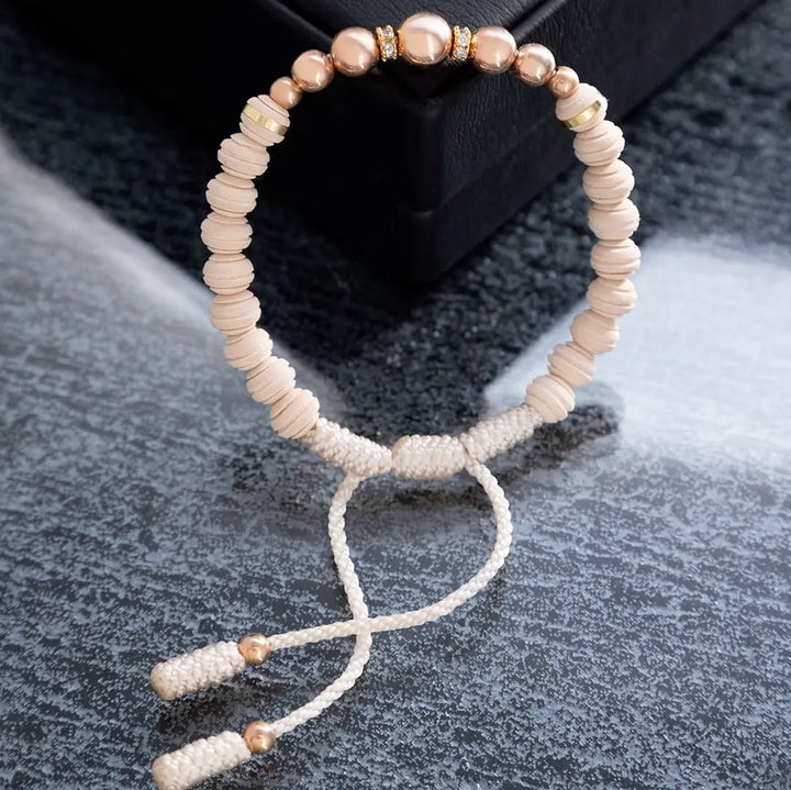 Pulsera De Dama De Terlenca Blanca Con Balines De 4mm, 5mm, 6mm y 8mm, Rondeles de 5mm y Neoprenos De 6mm