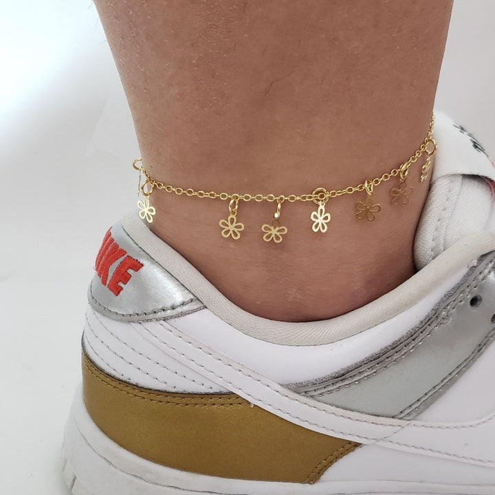 Tobillera De Dama De Tejido Aros Con Colgantes De Flores De 25cm De Largo
