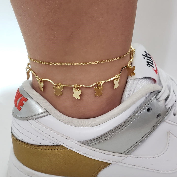 Tobillera De Dama De Tejido Rustico Con Colgantes De Mariposas